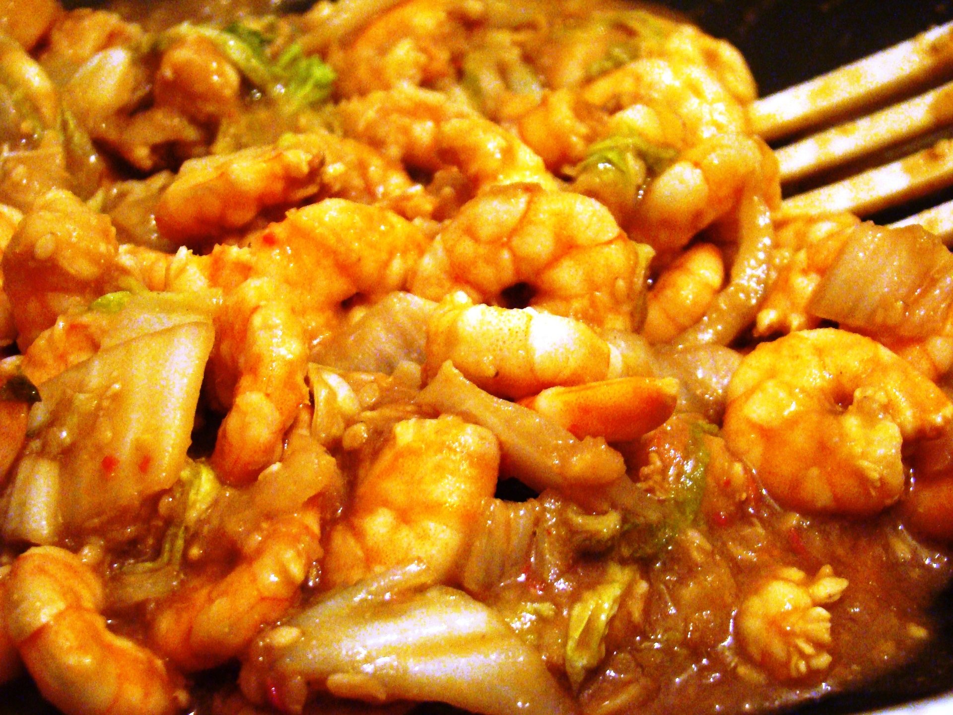 - o macarrão e os camarões, misture bem, acerte os temperos,