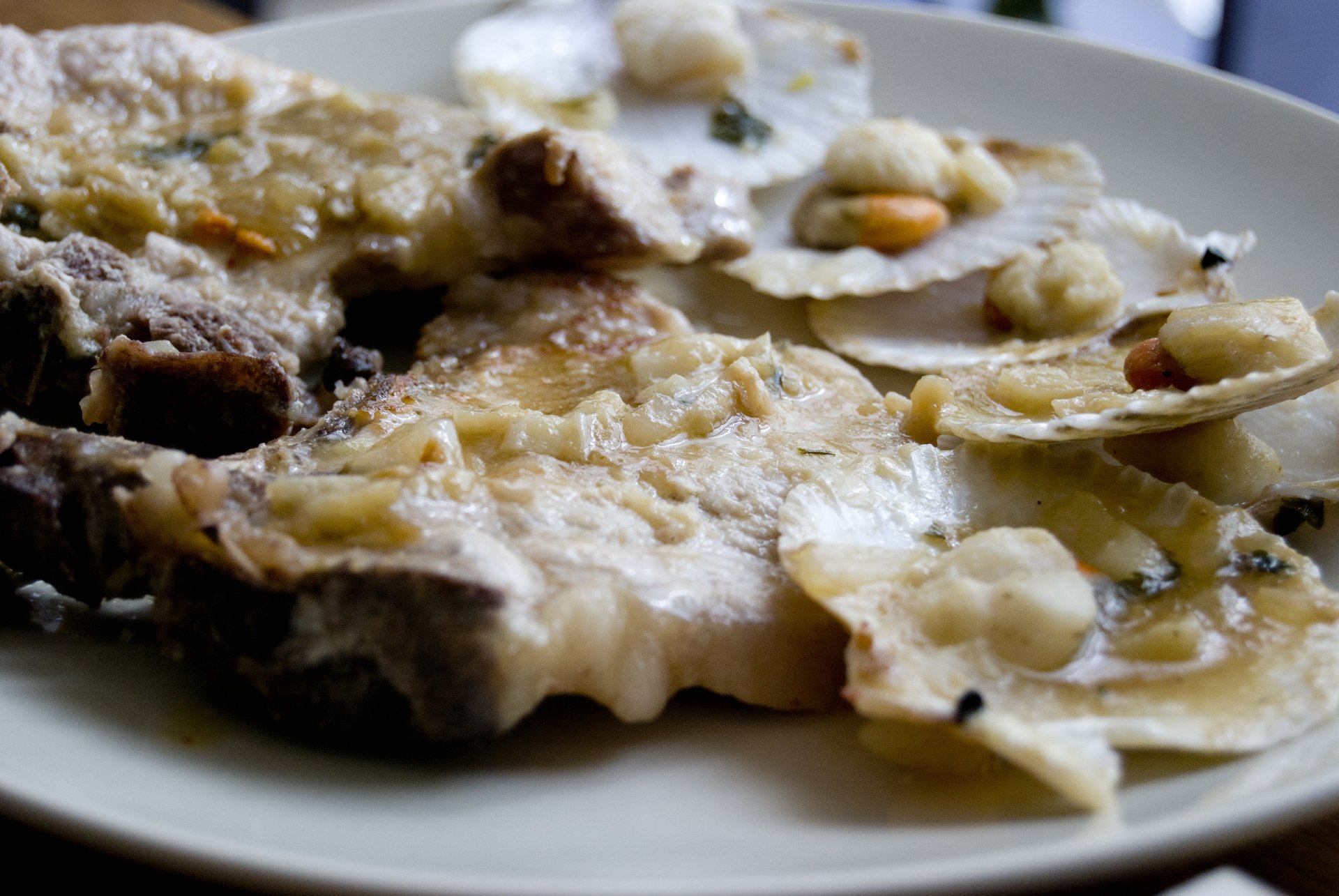 - Á parte douramos as chuletas e colocámolas nunha tarteira de barro, sobre elas vertemos as ameixoas e a salsa, deixandoas a lume manso ata que as ameixoas abran.