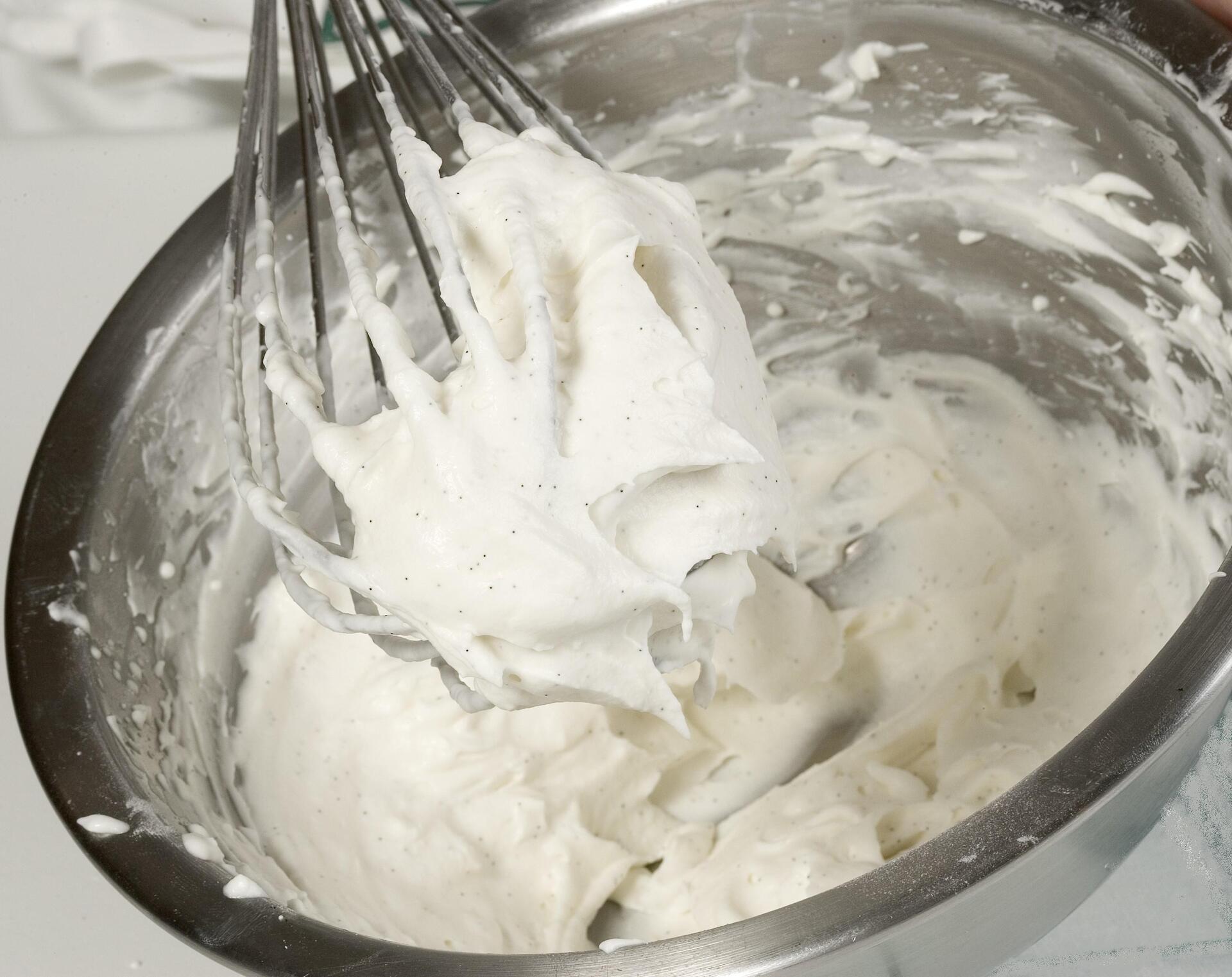 - resfriada; bata na velocidade alta até que forme picos. Sem