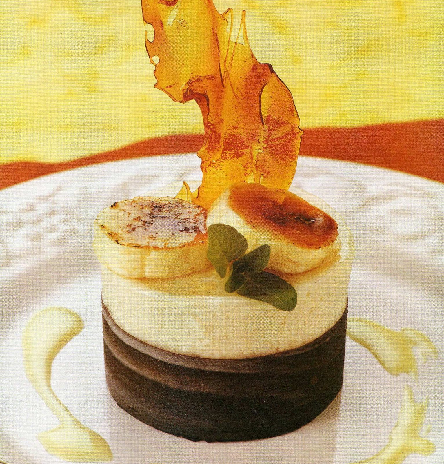 - Descascam-se as bananas, regam-se com o sumo do limão e passam-se por uma peneira de crina ou esmagam-se. Bate-se o puré de bananas com o açúcar e o Kirsch. À parte batem-se as natas com uma colher (sopa) de açúcar até terem a consistência de creme de chantilly. Batem-se também à parte as claras em castelo bem firme. Juntam-se as duas misturas cuidadosamente e por fim adicionam-se ao puré de bananas. Põe-se a mousse de bananas numa taça grande ou em taças individuais e serve-se gelada acompanhada com palitos de champanhe.