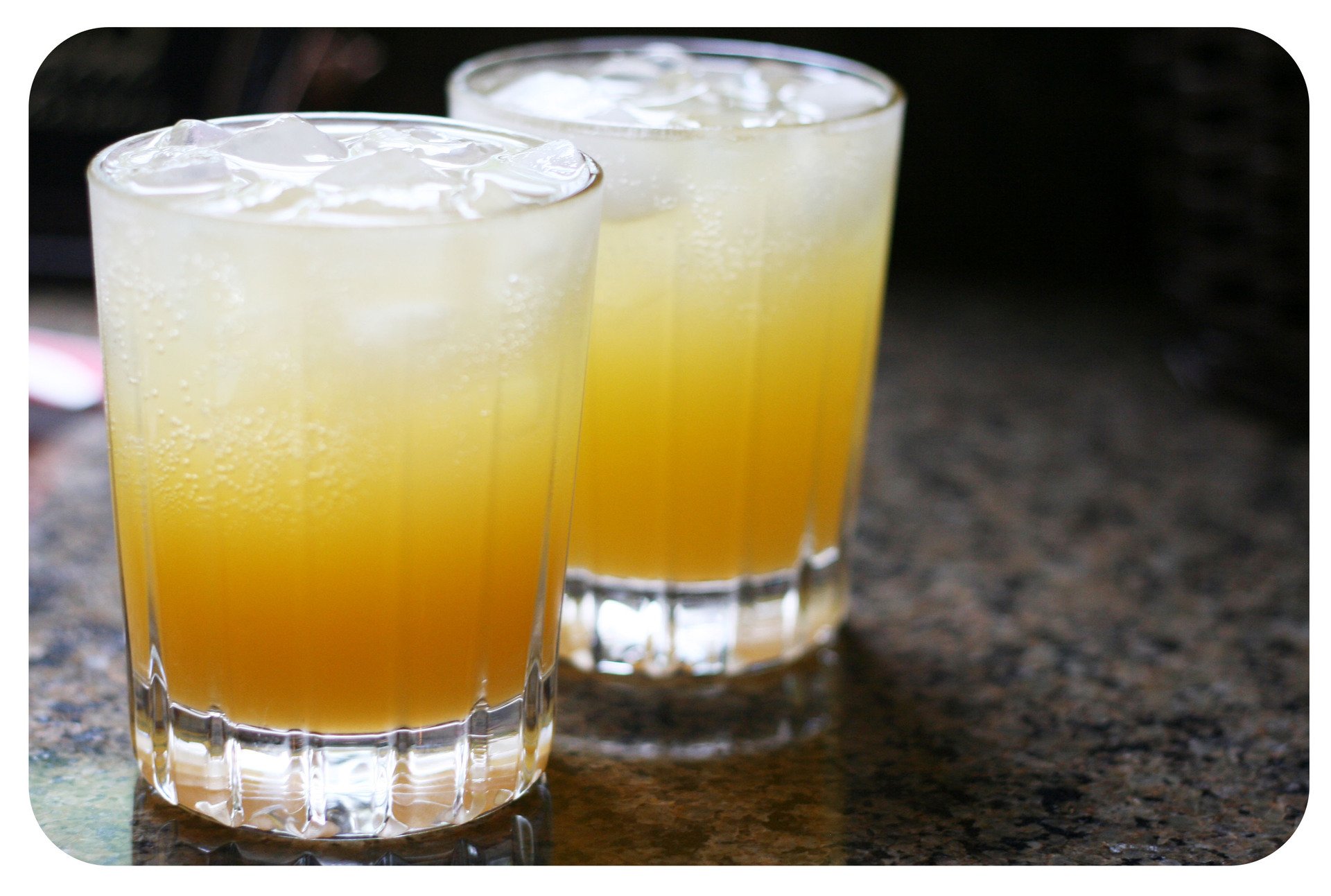 - Misture os ingredientes, menos o club soda, acrescente gelo e agite bem. Coe e coloque em copo de uísque. Encha com cubos de gelo e complete com o club soda. Guarneça com pedaços de abacaxi