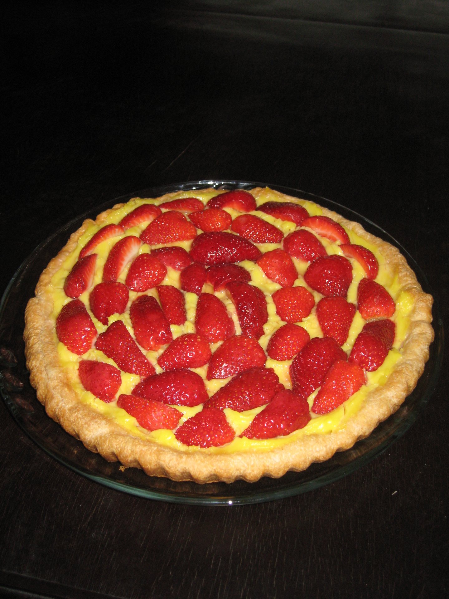 - Verta o preparado sobre a massa e decorre com os morangos.