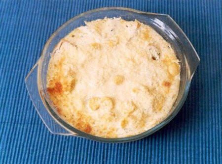 - Num recipiente refractário médio de barro, disponha alternadamente camadas de abóbora refogada e do creme de ricota, terminando com o creme.