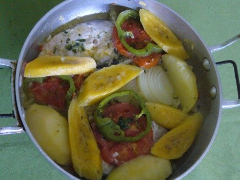 - A seguir, acrescentar a vinha-d´alhos e um copo de água. Deixar cozinhar lentamente, pingando água e juntar a cenoura cozida, a salsa e o pimentão.