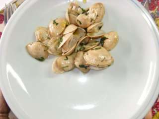 - Depois de escorridas, colocam-se as ameijoas numa frigideira com um pouco de azeite.