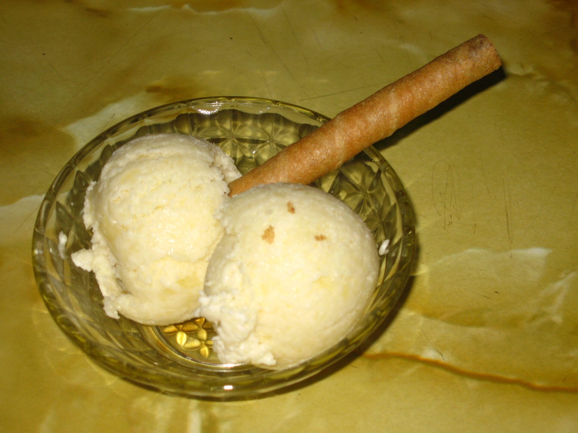 - Bata as natas com o açúcar glacé e adicione a polpa. Adicione também as bolachas moídas, o vodka ou outro e as claras em castelo. Misture os ingredientes e deite o creme obtido na casca do ananás, calcando um pouco.