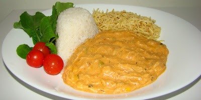 - Leve ao fogo uma frigideira com o óleo, o alho e a cebola e frite por 1 minuto. Adicione o molho de tomate, o vinho e tempere com sal e pimenta. Com a panela destampada, cozinhe em fogo brando por 10 a 15 minutos. Retire do fogo, junte o leite de coco e mexa bem.