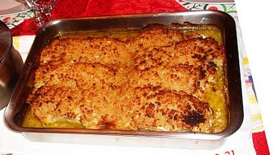 - Espalhe sobre o creme, salpique com manteiga e leve ao forno quente uns 20 minutos.