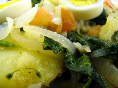 - Adicione as batatas fritas, os grelos, mexa tudo e vá sacudindo o tacho para que não se pegue.