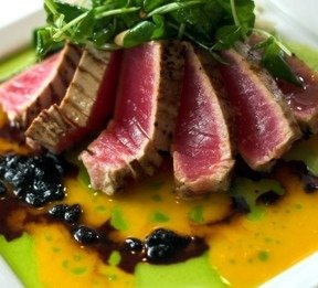 - Cubra com o resto do molho, e decore com tiras de salmão envolto em uma rosa.