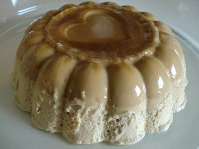 - Comece por colocar as folhas de gelatina num recepiente com água fria e leve o leite ao lume até levantar fervura. Entretanto, bata as gemas com o acúcar, directamente num tacho, adicione-lhes o café solúvel e o leite quente, continuando sempre a bater até o creme ficar bem homogéneo. Quando tudo estiver pronto, leve o tacho ao lume e continue a mexer até o creme engrossar. Depois, retire o preparado do lume e adicone-lhe as folhas de gelatina previamente demolhadas, misturando tudo muito bem,até as folhas se dissolverem. Por fim, bata as claras em castelo e adicione-lhe cuidadosamente ao creme. Coloque o preparado numa forma previamente passada por água fria e leve ao frigorifico pelo menos durante seis horas. Decore a gosto com caramelo líquido.
