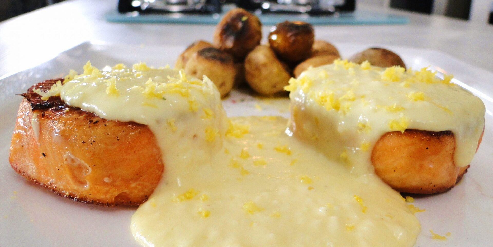 - Coza as framboesas com o açúcar durante 10 minutos. Triture tudo e reserve 1 dl para a cobertura. Misture ao puré de framboesas 8 folhas de gelatina, previamente demolhadas, e misture bem. Deixe arrefecer o preparado e em seguida adicione as natas.