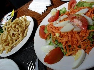 - Acrescente a salsa e cebolinha. Quebre os ovos, um a um numa tigelinha e distribua-os, uniformemente, pela frigideira, de modo que, a cada bife, corresponda um ovo. Tampe por um ou dois minutos, até que as gemas adquiram uma película, mas sem cozinhar a gema, pois o mais gostoso é quando, no prato, se fura as gemas e elas escorrem, misturando-se ao arroz branco... hum....