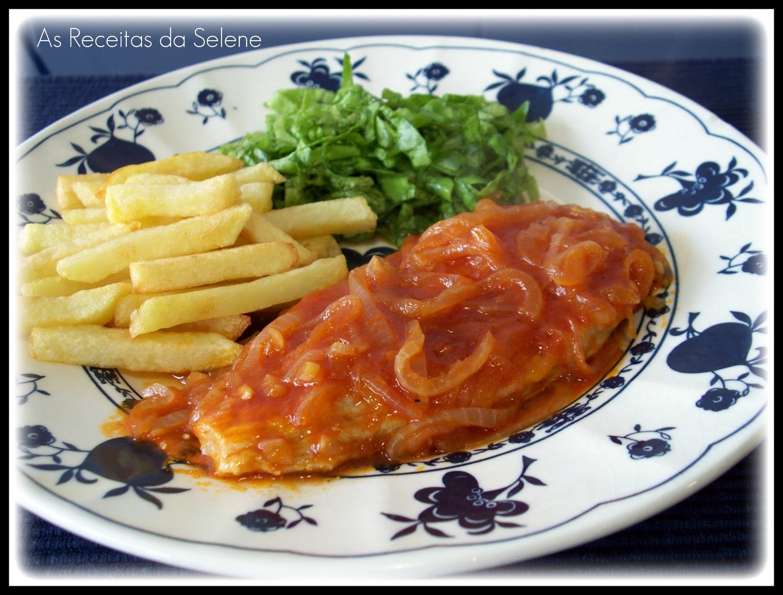 - Corte as cebolas e os alhos em rodelas finas e leve ao lume, num tacho com margarina. Quando a cebola começar a ficar mole, junte os bifes, tape o tacho e deixe suar um pouco sobre lume muito brando.