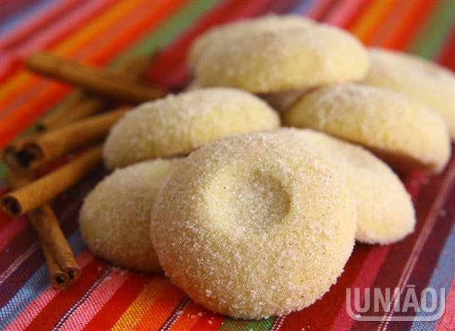 - Vá aos poucos acrescentando a farinha e amassando. Modele os biscoitos pequenos e passe no açúcar cristal.