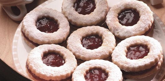 - Numa tigela misture a farinha com o açúcar e uma pitada de sal. Junte a margarina Vaqueiro cortada em bocadinhos e amasse bem até ligar. Molde em bola e estenda a massa com a ajuda do rolo até obter uma placa com 3 mm de espessura. Corte bolachas com cerca de 5 cm de diâmetro com um corta-bolachas canelado. Retire o centro a metade das rodelas, usando para isso um corta-bolachas mais pequeno. Coloque as bolachas sobre um tabuleiro polvilhado com farinha e coza em forno médio (180º C) durante cerca de 8 minutos.