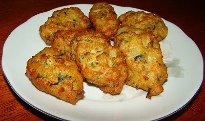 - Passe a mandioca no espremedor de batatas e junte todos os ingredientes. Coloque farinha de trigo, o suficiente para dar liga (a massa não deve ficar mole. Enrole os bolinhos e frite em óleo quente. Algumas receitas, mandam que se passe o bolinho na farinha de trigo para fritar, eu não uso, mas...