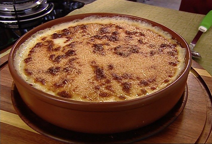 - Desenforme e polvilhe o bolo com açúcar em pó. Para enfeitar, queime o açúcar em diagonais, com um ferro em brasa.