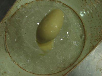 - Numa frigideira em fogo médio coloque 3 colheres (sopa) de açúcar e 300 g de frutas de sua preferência e deixe no fogo por 3 minutos. Retire do fogo e reserve. OBS: se for usar kiwi, não faça a calda de açúcar, use-o cru. 2. Numa panela fora do fogo coloque 6 gemas, 5 colheres (sopa)de açúcar e 5 colheres (sopa) de amido de milho e misture muito bem com o auxílio de um batedor de arame. Adicione 600 ml de leite e leve ao fogo médio até engrossar. Retire do fogo e acrescente 100 g de manteiga cortada em cubinhos e gelada. 3. Divida o creme em duas partes iguais. Numa parte acrescente 150 g de chocolate branco picado e na outra parte 150 g de chocolate ao leite picado. Misture bem até que os chocolates derretam e fiquem com um brilho acetinado. Reserve. 4. Numa fôrma de bolo inglês forrada com saco plástico coloque no fundo metade da fruta com a calda, uma camada de chocolate branco (reservado acima), o restante da fruta com a calda e uma camada de chocolate ao leite (reservado acima). Leve ao congelador de um dia para o outro. 5. Retire do congelador antes da refeição.Ponha num prato de tarte e está pronto a servir. Ponha a calda das frutas quente ao lado, para quem se quizer fazer um quente-frio.