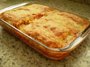 - Vai a cozer em forma de bolo inglês, previamente forrada de papel vegetal (especial para uso culinário) untado com manteiga ou margarina. Cozer em forno quente (200° mais ou menos).