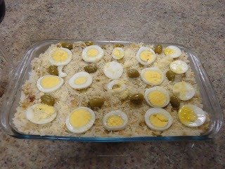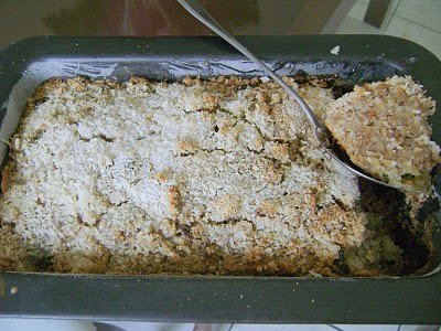 - Em uma forma untada e enfarinhada coloque uma camada de fatia de pão velho, regue com a caldo batido no liqüidificador e polvilhe com coco ralado. Repetir as camadas. Deixe descansar por 30 minutos e leve para assar em forno médio por 30 a 40 minutos.
