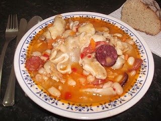 - Ponha os buchos a demolhar (24 horas). Limpe-os bem e coza-os conjuntamente com o feijão também demolhado (1 hora pelo menos). A meio da cozedura junte as cenouras lavadas e o chouriço. Entretanto, faça um refogado com o azeite, a cebola picada, os dentes de alho , o louro, o colorau e os cravinhos da Índia. Junte o refogado ao preparado anterior. Retifique o sal e tempere com pimenta. Deixe apurar um pouco e sirva.