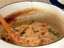 - Coza as batatas descascadas com a cebola, o chouriço e os dentes de alho em litro e meio de água temperada com o sal e metade do azeite. Retire o chouriço, esmague tudo o resto e leve novamente ao fogo. Assim que estiver a ferver adicione a couve. Deixe cozer com o recipiente destapado só o tempo suficiente para a couve deixar de saber a crú. Verifique o tempero e adicione o resto do azeite. Corte o chouriço em rodelas, distribua-as pelos pratos e regue com o caldo-verde. Nota: Se a couve for muito dura, escalde-a com água a ferver e passe-a em seguida por água fria.