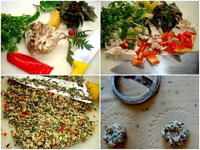 - *Sobre bases com molho tártaro, colocar por cima uma rodela de tomate e outra de ovo cozido e um raminho de chicória; rectificar de sal.