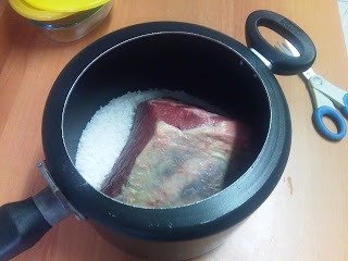 - Por fim, ponha as amêijoas, o presunto em tiras e a linguiça em rodelas.