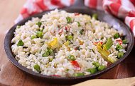 Ingredientes 1 colher (sopa) de manteiga clarificada 1 colher (sopa) de manteiga 1 xicara de ervilha 2 xicara de arroz 100 gramas de queijo fresco com soro 600 ml de água fervente Sal mari... Ver Receita