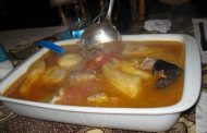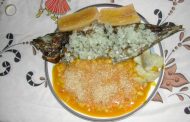 Ingredientes •1 kg de peixe fresco (goraz,ou pargo) •1 dl de óleo-de-palma •500 grs de batata-doce •250 grs de peixe seco (corvina etc.) •2 cebolas •2 litros de água +- •3 tomates •1 molho d... Ver Receita
