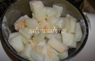 Ingredientes •1 kg de melão •500 gr de açúcar •1 copo de água •1 limão •1 copo de conhaque Preparação Descasque o melão, retirando a casca e as pevides, e corte-o em cubos pequenos. Numa tig... Ver Receita