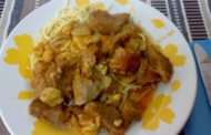 Ingredientes 125 g de carne de porco assada, cortada em fatias finas 125 g de massa de arroz seco 80 g de ervilhas congeladas 1 cebola média 60 ml de leite de côco 2 colheres (chá) de colho... Ver Receita