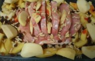 Ingredientes 1,5 kg de carne entremeada da barriga do porco 1 kg de entrecosto 2,5 dl de vinho branco Sal, pimenta e colorau q.b. 2 folhas de louro 1,200 kg de batatas Preparação Corte a car... Ver Receita