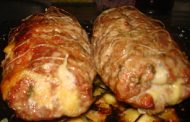Ingredientes 250 g. de carne de vaca 250 g. de carne de perú 250 g. de carne de porco 2 pães 2 cubos de caldo de carne 1 cebola grande 2 dentes de alho 1 ovo 8 tiras de bacon 2 colheres de s... Ver Receita