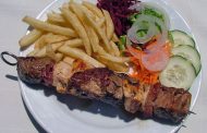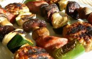 Ingredientes 200 g. de carne de porco 200 g. de carne de vaca sal, louro, óleo 4 cebolinhas 1 pimento verde 1 pimento vermelho 4 fatias de bacon 4 tomates pequenos 2 salsichas frescas molho... Ver Receita