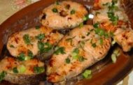 Ingredientes 1 Kg de salmão em postas . 1 colher (chá) de sal . 1 colher (chá) de alho desidratado Damm Molho: 1 cebola grande fatiada . 1 pimentão verde (em tiras) . 2 copos de água . 1 col... Ver Receita