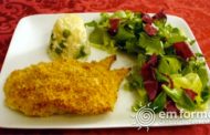 Ingredientes •200g de filetes de peixe gato •1 ovo •Pão ralado •Leite •Vinho Branco •Sal •1 colher de chá de azeite Preparação •30g de ervilhas congeladas •2/3 chávena de chá de arroz branco... Ver Receita
