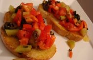 Ingredientes •Fatias de pão (faço com pão alentejano) •Tomate cortado aos cubos (misturem variedades, maduros e menos maduros) •Azeitonas pretas em rodelas •Azeite q.b. •Flor de sal q.b. •Or... Ver Receita