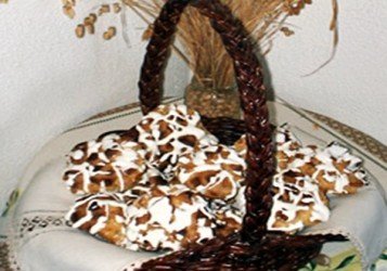 - Depois de frias, cobrem-se integralmente as cavacas com a cobertura de claras e açúcar. Põem-se a secar sobre uma camada de caruma de pinheiro.