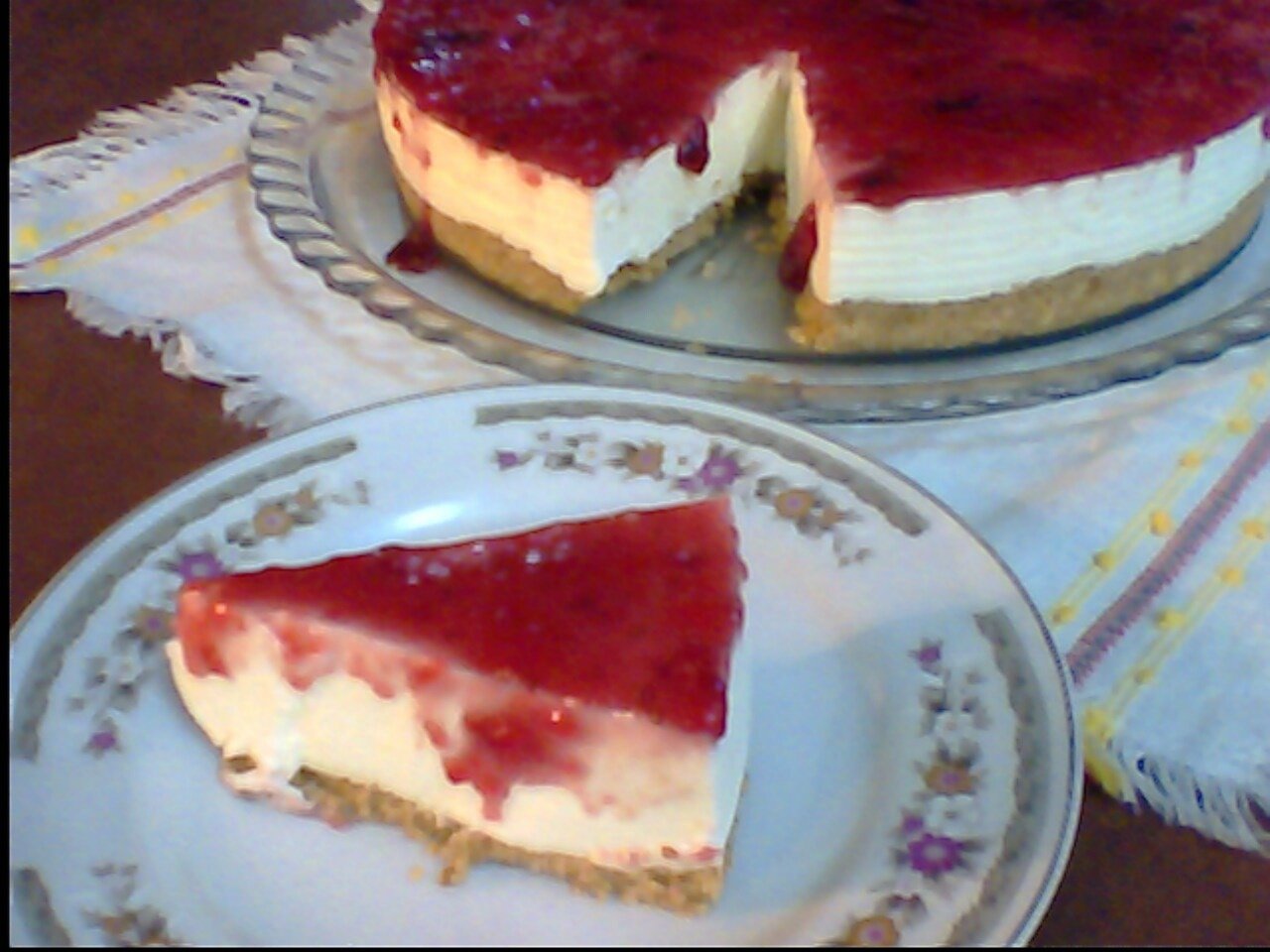 - Colocam-se as folhas de gelatina num pouco de água. Entretanto, batem-se as natas, junta-se o leite condensado e por fim o queijo Filadelphia. Espremem-se bem as folhas de gelatina e desfazem-se num bocadinho de água a ferver (o mínimo possível). Junta-se cuidadosamente ao preparado anterior. Coloca-se esta mistura por cima da base de bolacha.