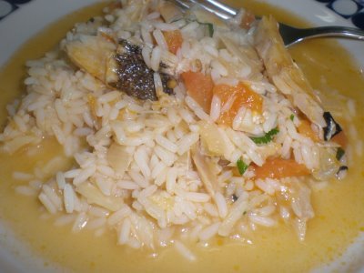 - Retire a pele do peixe, tempere com o limão, o coentro, o vinagre, o sal e a pimenta. Deixe repousar por 20 minutos. Coloque as postas num espeto, intercalando com fatias de tomate e cebola. Leve para assar numa churrasqueira com carvão até que o peixe fique dourado. Sirva com salada de feijão manteiga, farofa e arroz branco. Dá 2 porções. Obs: 353 calorias cada porção
