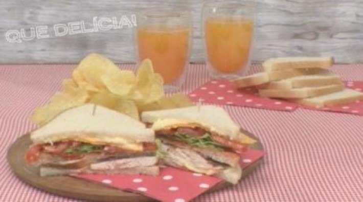 - Faça mais uma camada de quatro pães de forma, passe o creme e encubra com o alface fatiado.