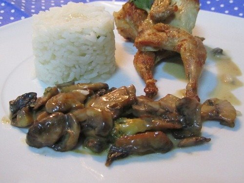 - Lave os cogumelos e corte-os em quartos. junte os cogumelos às codornizes e deixe cozer suavemente mais 15 minutos.