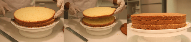 - Use uma faca serrilhada de bom corte para dividir a massa ao meio,tomando o cuidado de manter as duas partes simétricas.