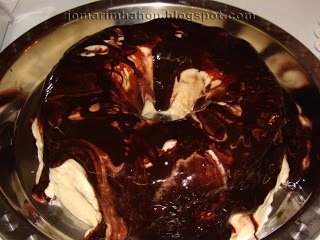 - Se tiver optado por uma forma grande de chaminé, mergulhe-a rapidamente em água quente para desenformar a coroa de gelatina.