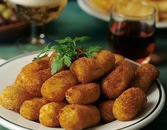- Encha com azeite até um terço um tacho de fundo espesso e aqueça o azeite a 180ºC, ou até que um cubo de pão fique castanho em 15 segundos. Frite os croquetes, em pequenas porções, durante cerca de 3 minutos cada, até que fiquem castanhos de todos os lados e aquecidos por inteiro. Escorra-os sobre papel absorvente. Sirva-os quentes ou mornos.