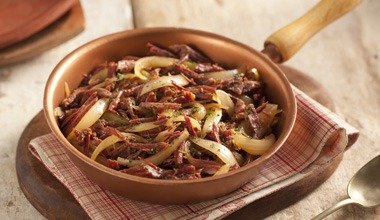 - moa na máquina de carne, tendo o cuidado de aparar o caldo,