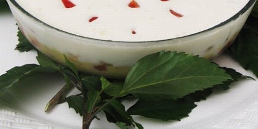 - Faça um creme misturando 1 lata creme de leite, 1 lata deleite condensado e 1 envelope de gelatina em pó incolor previmente dissolvida (sem levar ao fogo).