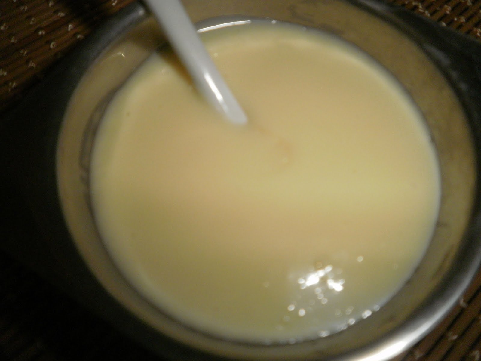 - Junte o leite fervido à mistura, e leve novamente ao lume até engrossar ligeiramente.